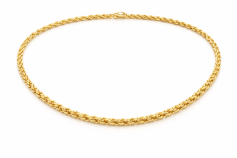 Expertly crafted with tightly twisted rope links, the design reflects light from every angle, creating a rich, dimensional shine that highlights the warmth of polished 14K yellow gold. The intricate rope construction offers both durability and fluid movement, allowing the chain to sit naturally and comfortably along the neckline.