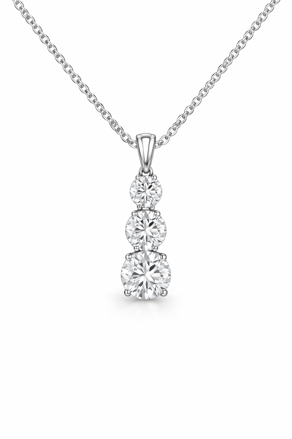 Celebrate life’s most meaningful moments with this elegant three-stone lab-grown diamond pendant necklace. Featuring three round brilliant-cut diamonds arranged in perfect harmony, this design represents the past, present, and future—making it a timeless symbol of love and connection.